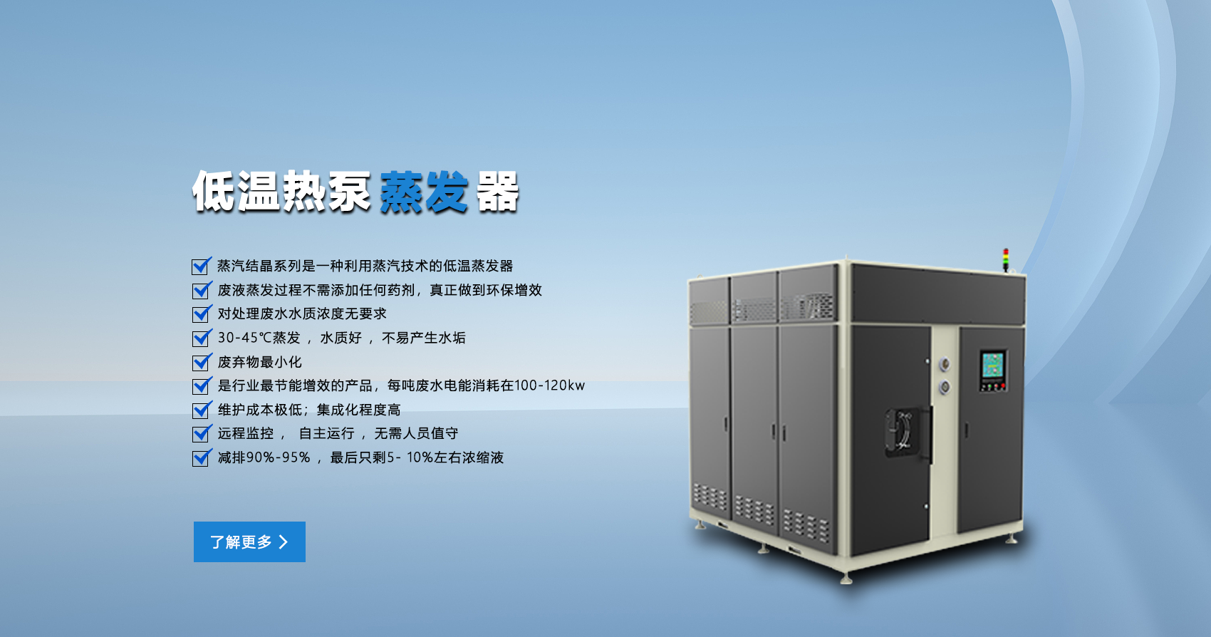 整合多家上游供應(yīng)商資源,為客戶提供業(yè)內(nèi)性價(jià)比高的低溫蒸發(fā)器.40+行業(yè)經(jīng)驗(yàn),快速出具客戶需求的低溫蒸發(fā)結(jié)晶解決方案.